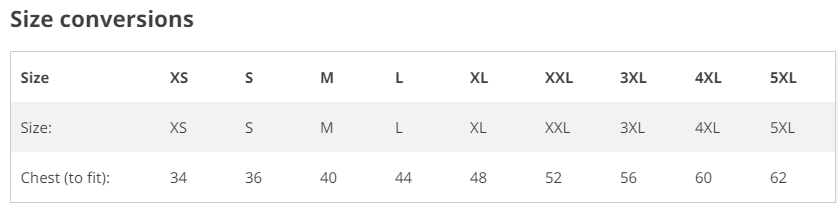 Chest (to fit) 34 36 40 44 48 52 56 60 62